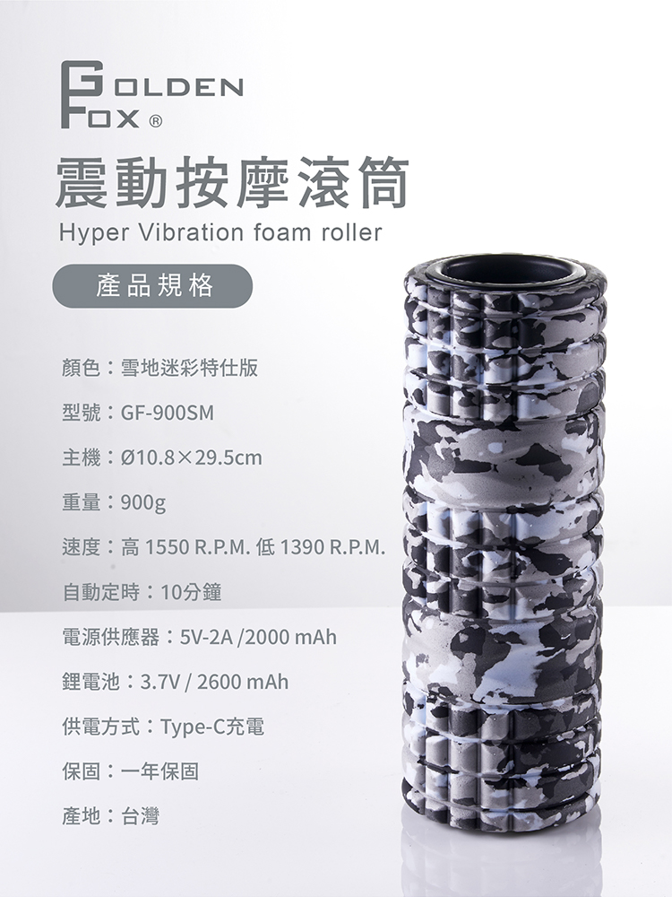 Golden Fox 震動按摩滾筒 GF-900SM 雪地迷彩特仕版 (台灣製)