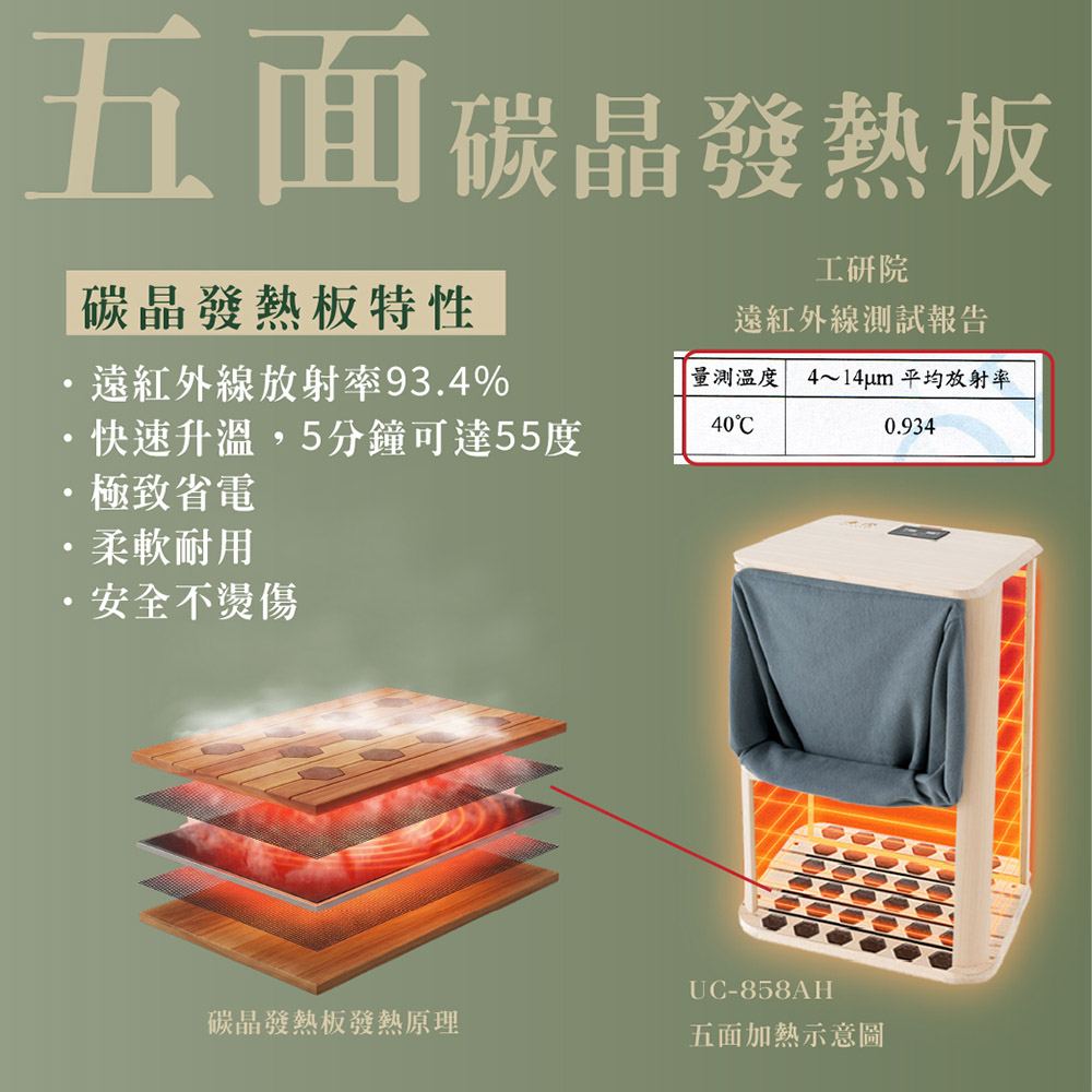 ★五面碳晶發熱板,五分鐘可達55度