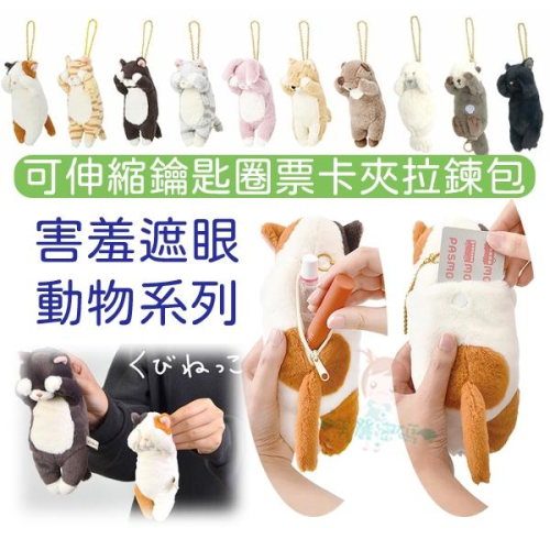 現貨日本LIV HEART遮眼 害羞動物 拉鍊包 貓咪 吊飾 伸縮 票卡夾 鑰匙圈 貓咪水獺兔子柴犬虎斑貓【美麗密碼】