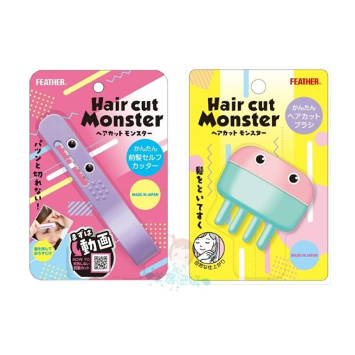 日本 FEATHER 小怪獸瀏海修剪梳 全新商品 日本製 材質:ABS樹脂 耐熱溫度:70度 刀片:不銹鋼(刀片厚度約0.254mm) 尺寸約 2*12.8cm 使用方法可參考圖片示意圖 小怪獸夾住後一手握住髮束根部 另一手將小怪獸向下滑動進行修剪 也可搜尋Hair cut Monster影片教學 --------------------------------------- 日本 FEATHER 小怪獸打薄理髮梳 全新商品 日本製 材質:PP樹脂 刀片:不銹鋼(刀片厚度約0.254mm) 尺寸約:7x6.5cm 使用方法可參考圖片示意圖 手握梳子並將產品眼睛朝上 梳在要打薄的區域 從上筆直向下修剪 也可搜尋Hair cut Monster影片教學