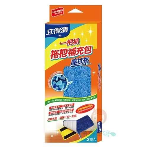 立得清 LET-GREEN 一把抓 魔拭布拖把 補充包 2入 成分:魔拭布拖把布 規格:33 x 13 ± 1 cm/條 入數:2入/盒