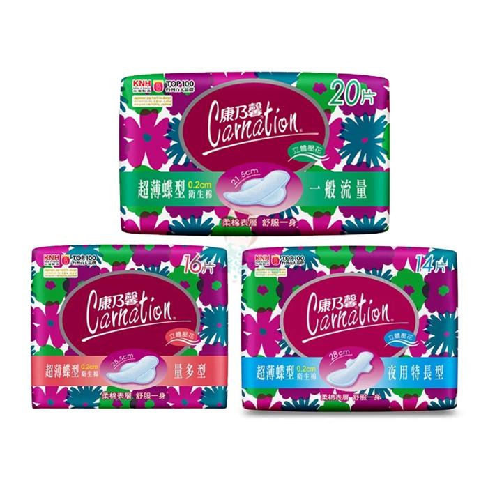 康乃馨 超薄蝶型衛生棉 一般流量 20片 /夜用特長型 14片 /量多型 16片【美麗密碼】