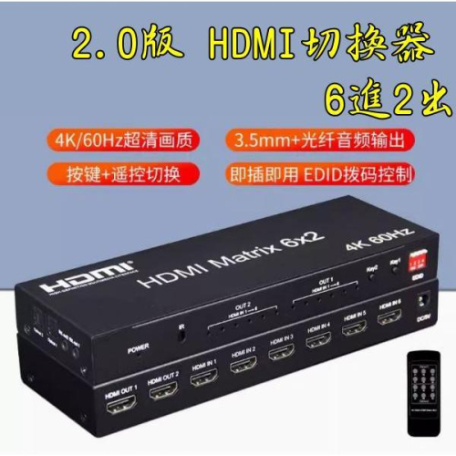 台中現貨 2.0版 HDMI切換器 6進2出 4K2K 分配器 HDMI6進2出 光纖 音視頻分離 3.5孔