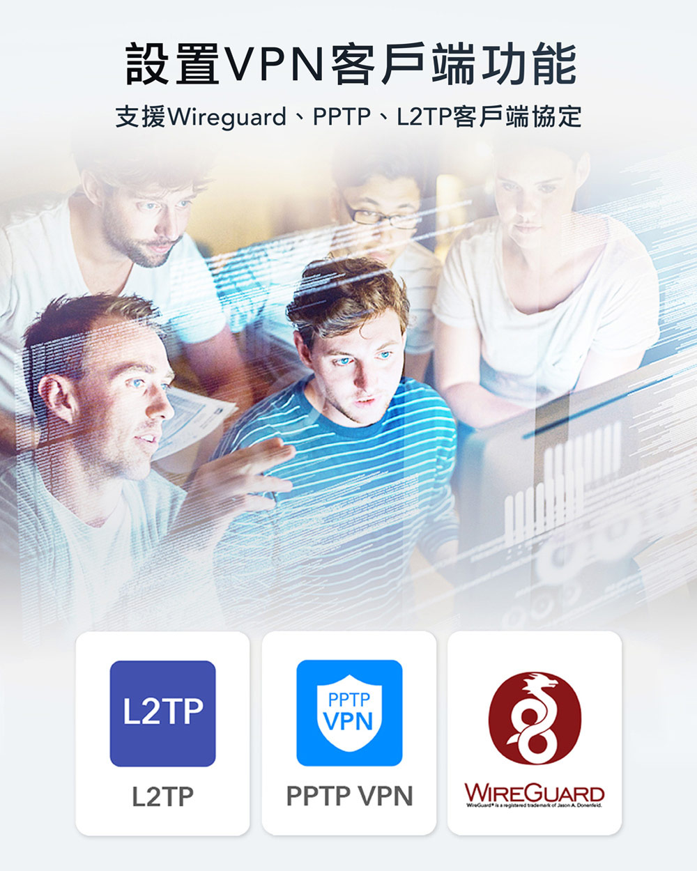 -支援Wireguard、PPTP、L2TP客戶端協定,設置VPN客戶端功能