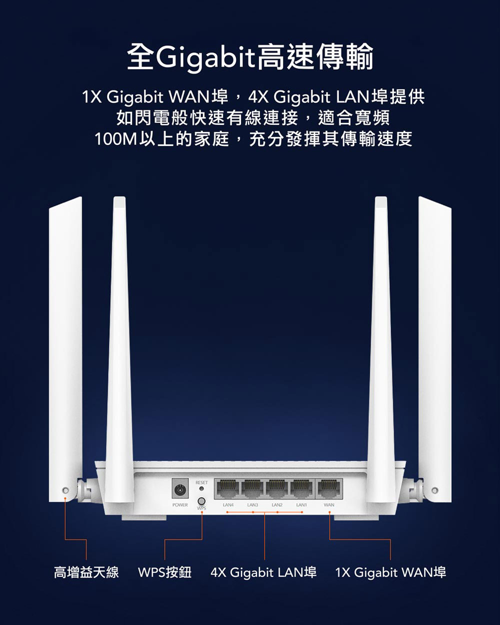 -3000 Mbps的Wi-Fi速率享受4K高畫質影片及遊戲體驗