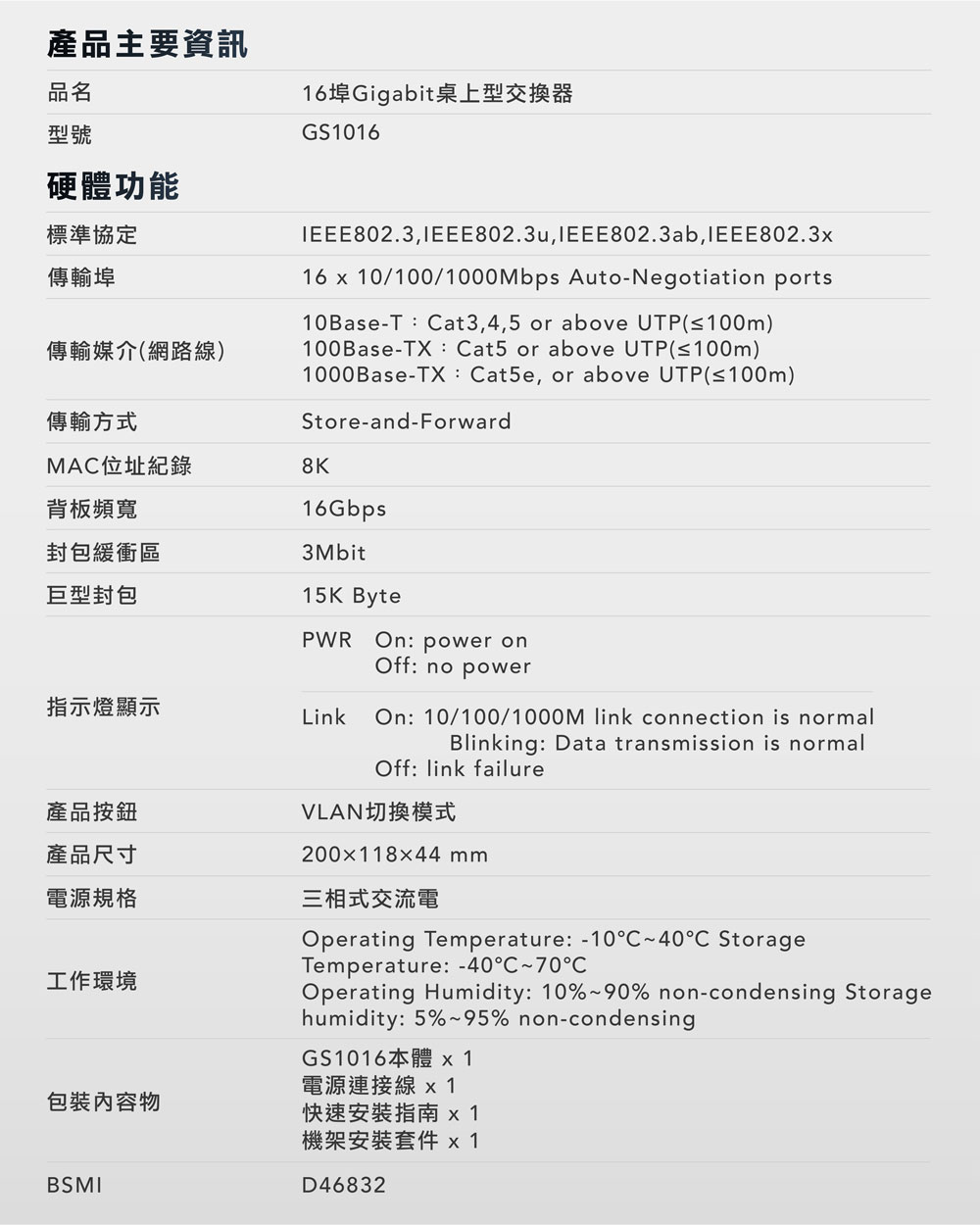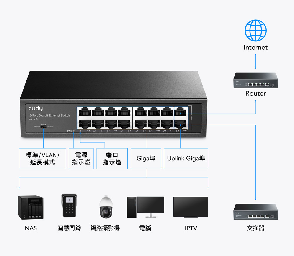 -16個10/100/1000Mbps網路連接埠,大幅擴充超高速有線網路的連接數量