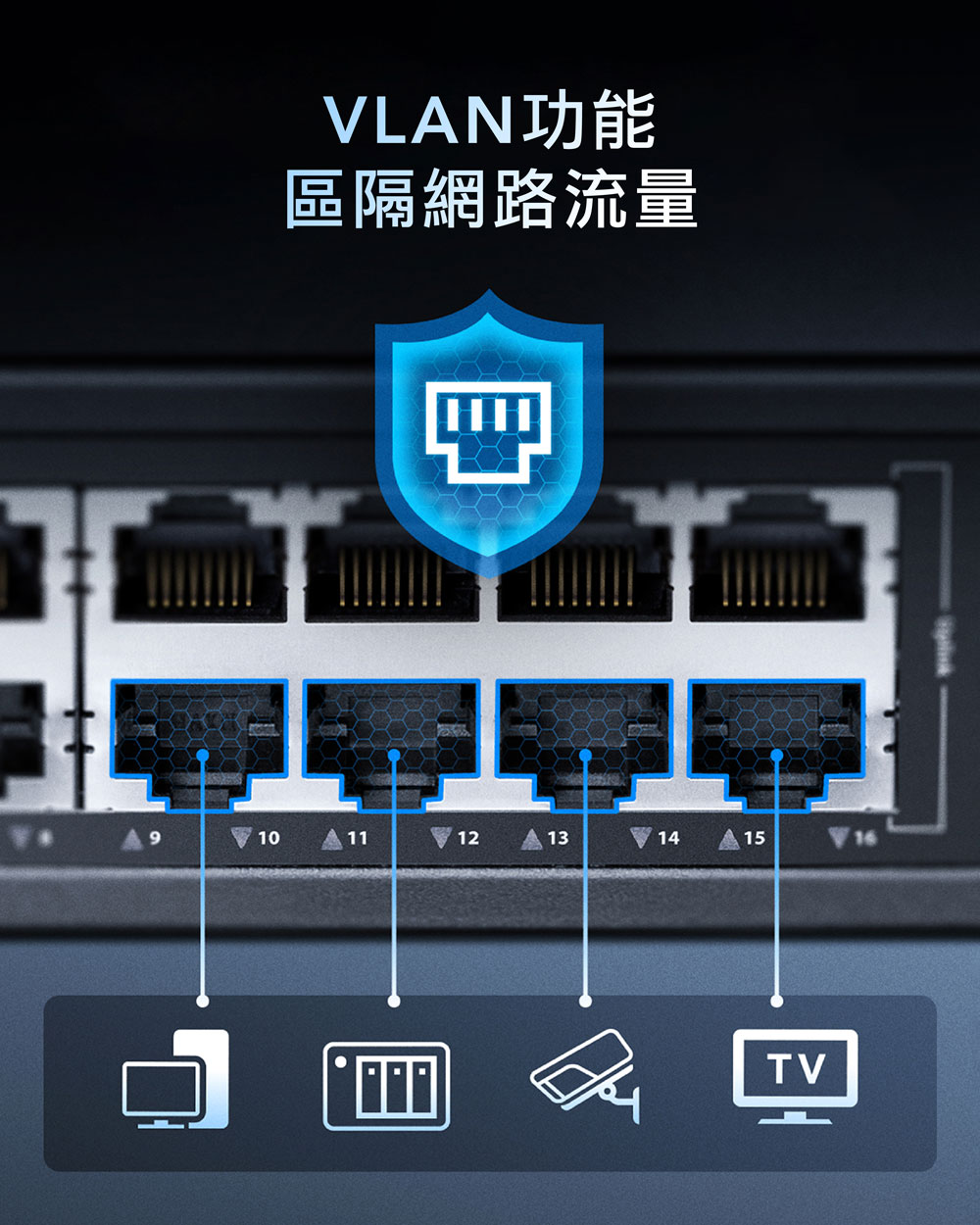 -VLAN功能,區隔網路流量,提高網路伺服器以及骨幹網路極高的連線速度