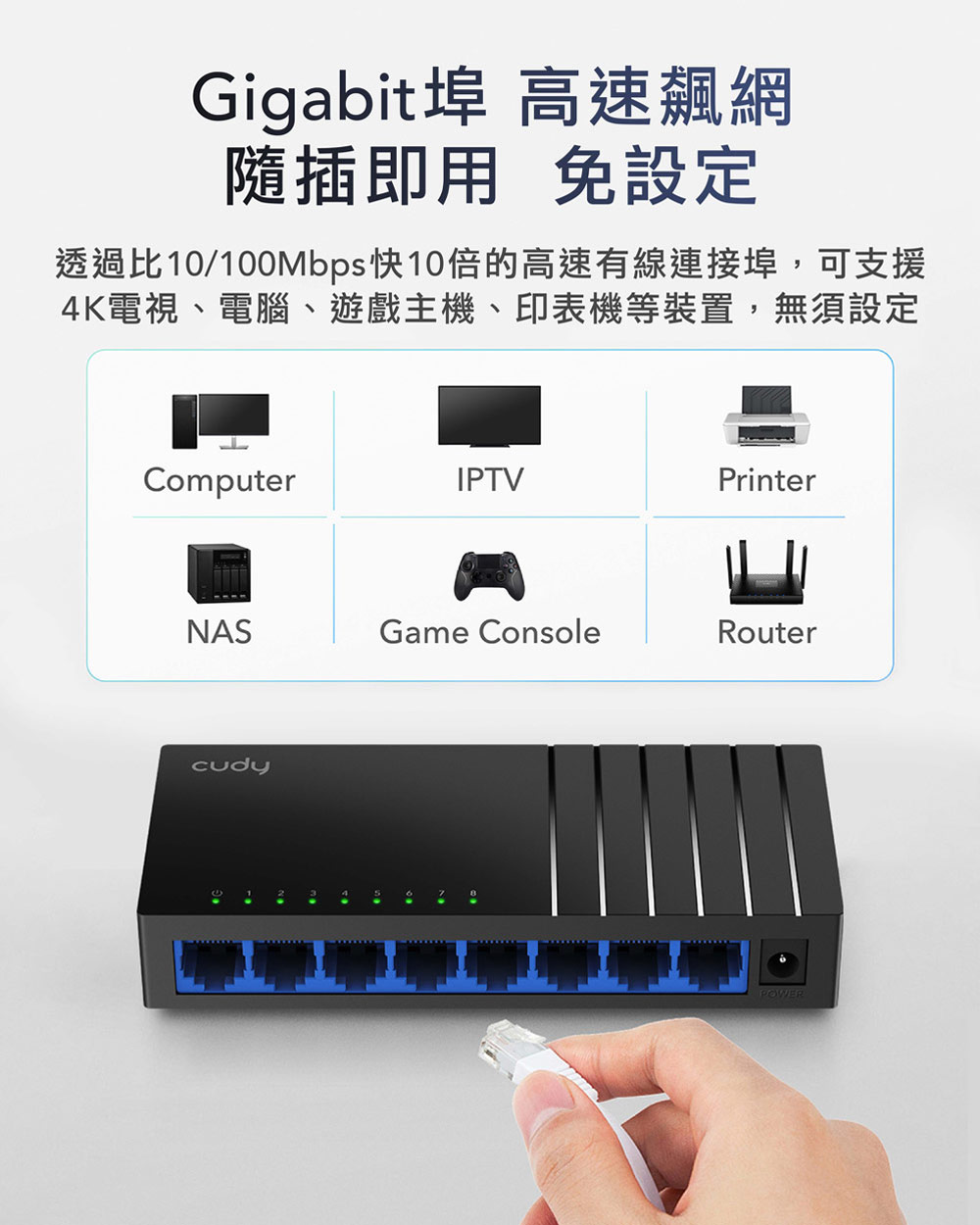 cudy GS108D 8埠 Gigabit桌上型網路交換器,集線器,HUB