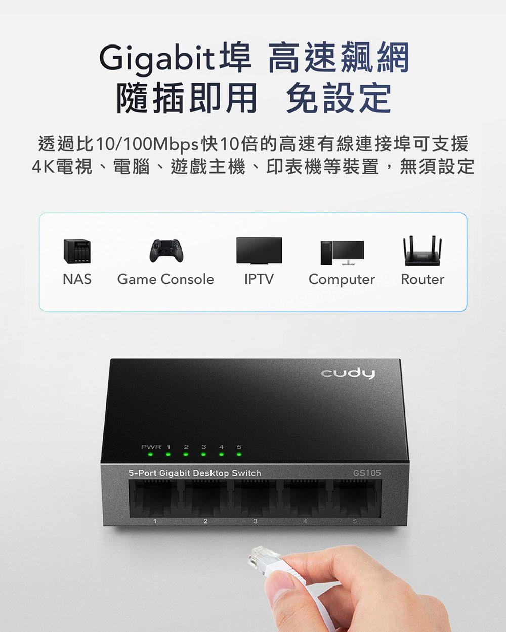 cudy GS105 5埠 散熱絕佳金屬外殼 Gigabit桌上型網路交換器 集線器 HUB 配置機箱最佳選擇