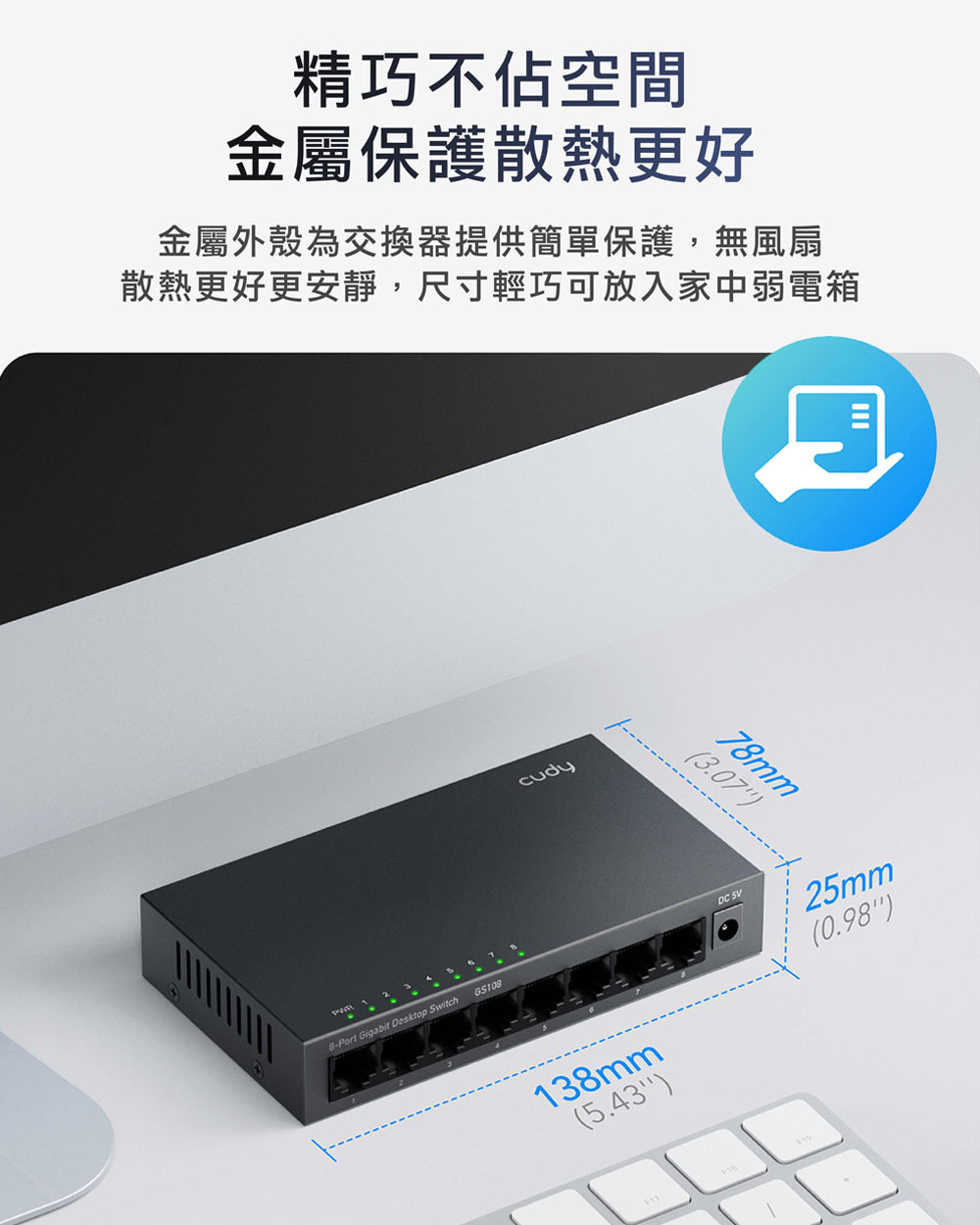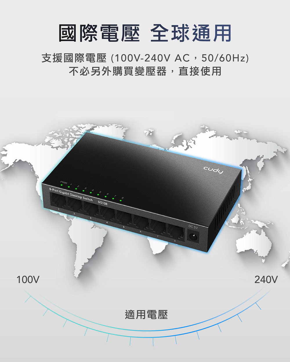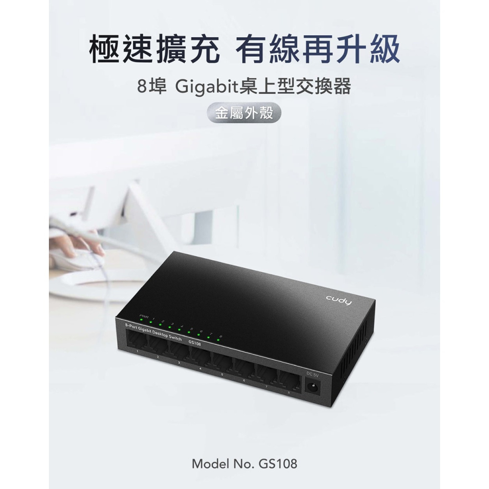 cudy GS108 8埠 散熱絕佳金屬外殼 Gigabit桌上型網路交換器 集線器 HUB 配置機箱最佳選擇
