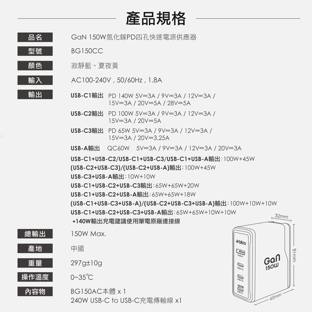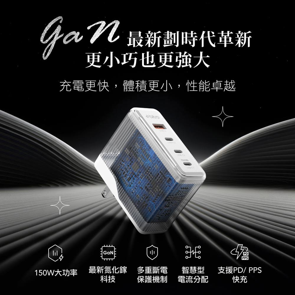 品名:GaN 150W 氮化鎵四孔急速快充電源供應器