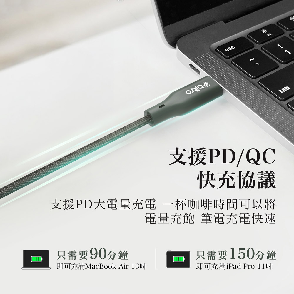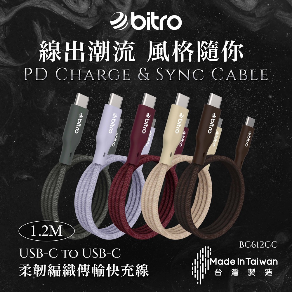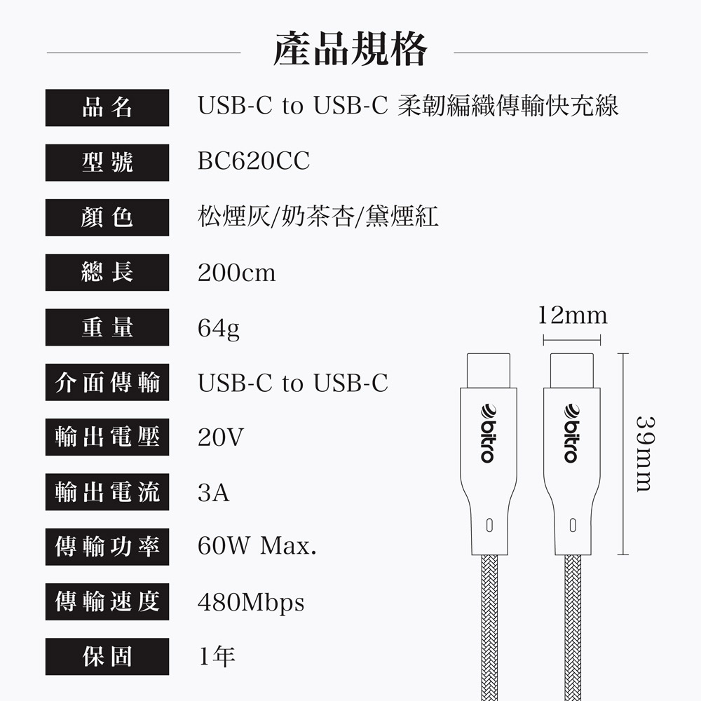 bitro Type-C to C 60W充電傳輸線 2M 手機 蘋果 安卓 MAC 筆電 充電線 台灣製造