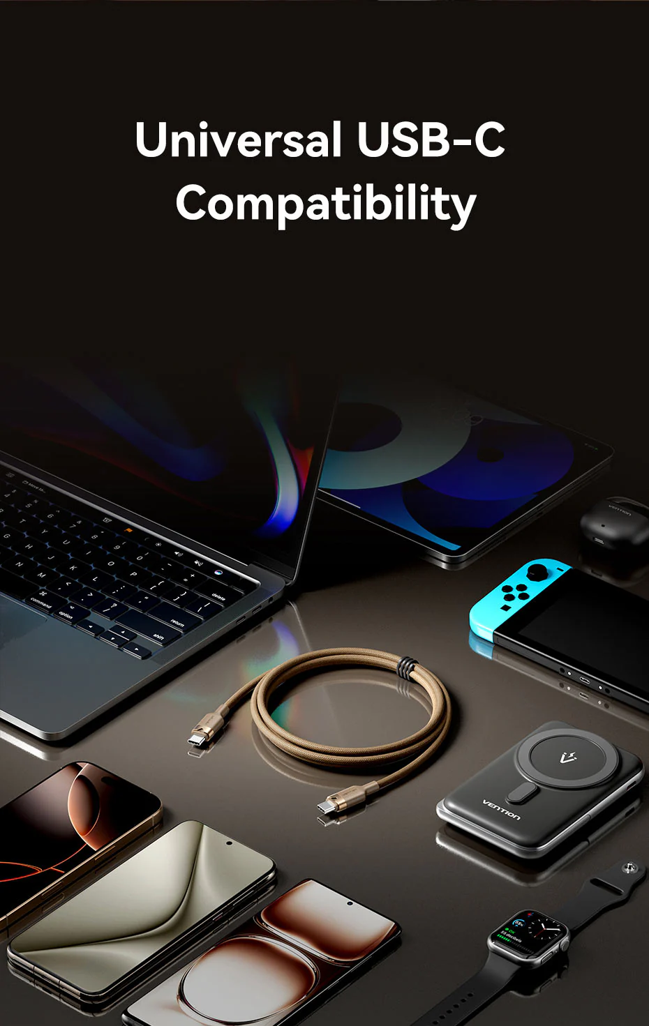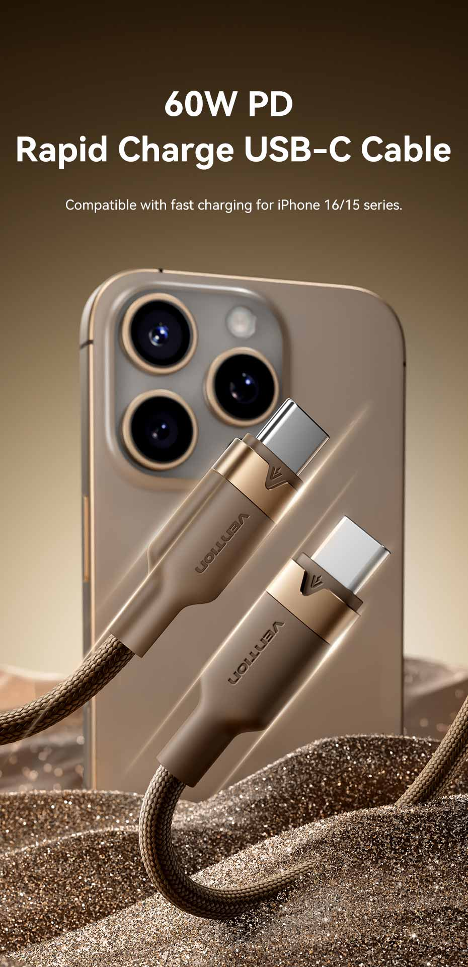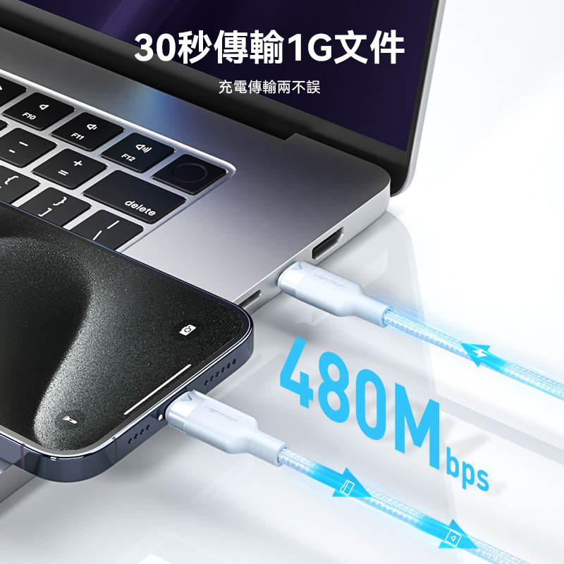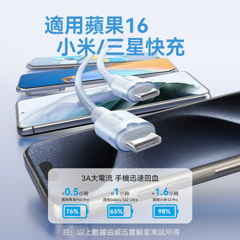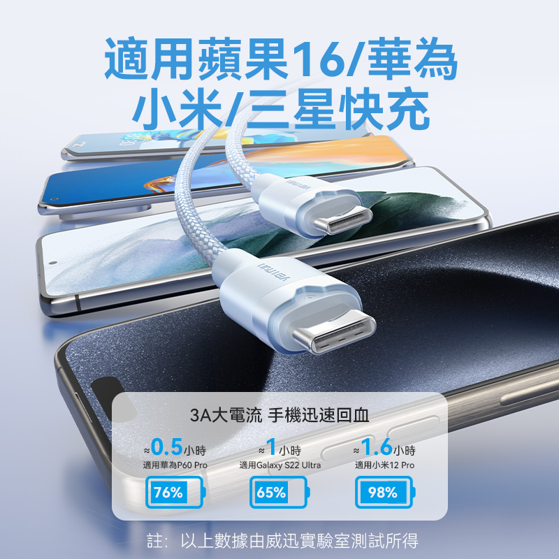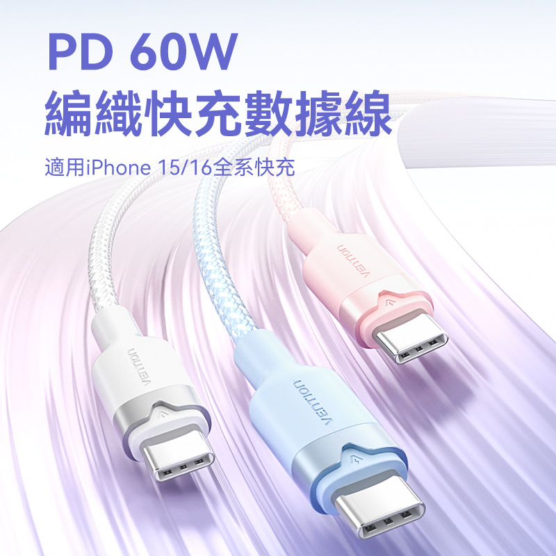 VENTION 威迅 Type-C to Type-C 手機快充線 PD 60W 編織快充數據線 1M2M 安卓蘋果
