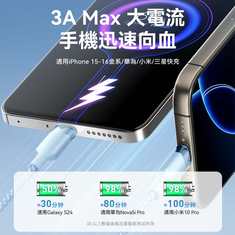 VENTION 威迅 USB-A to Type-C 手機充電傳輸線 1-2米 快充 充電線 快充線 蘋果 安卓