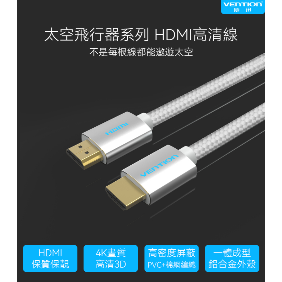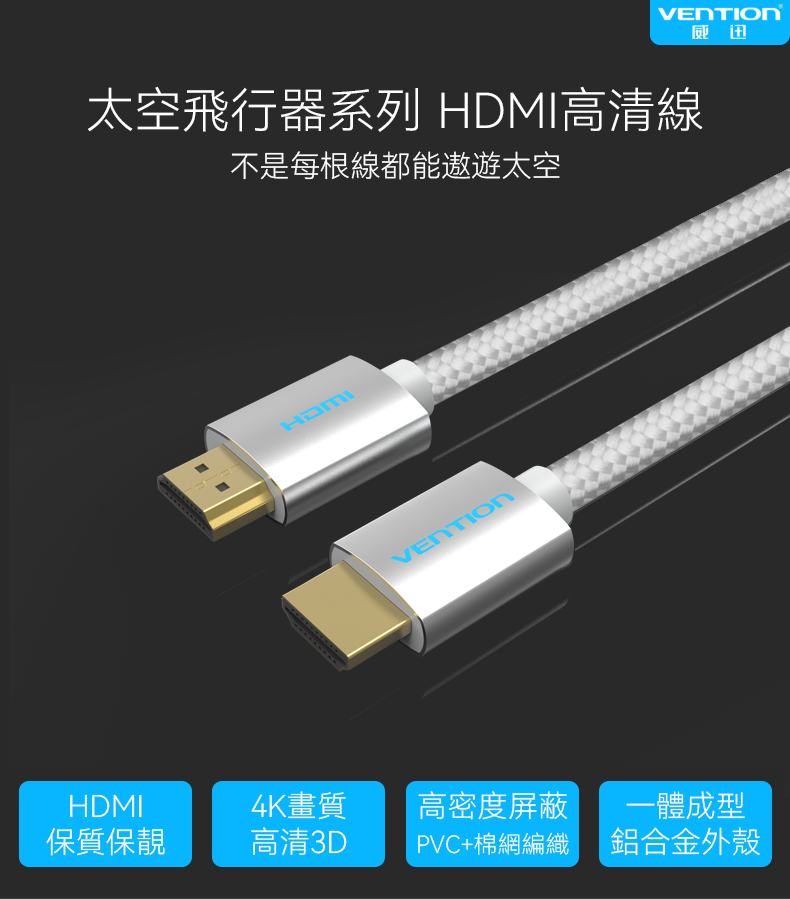 VENTION 威迅 HDMI 4K高畫質影音傳輸線 1-5M 抗氧化鍍金接頭 HDMI協會會員,HDCP標準協議保護