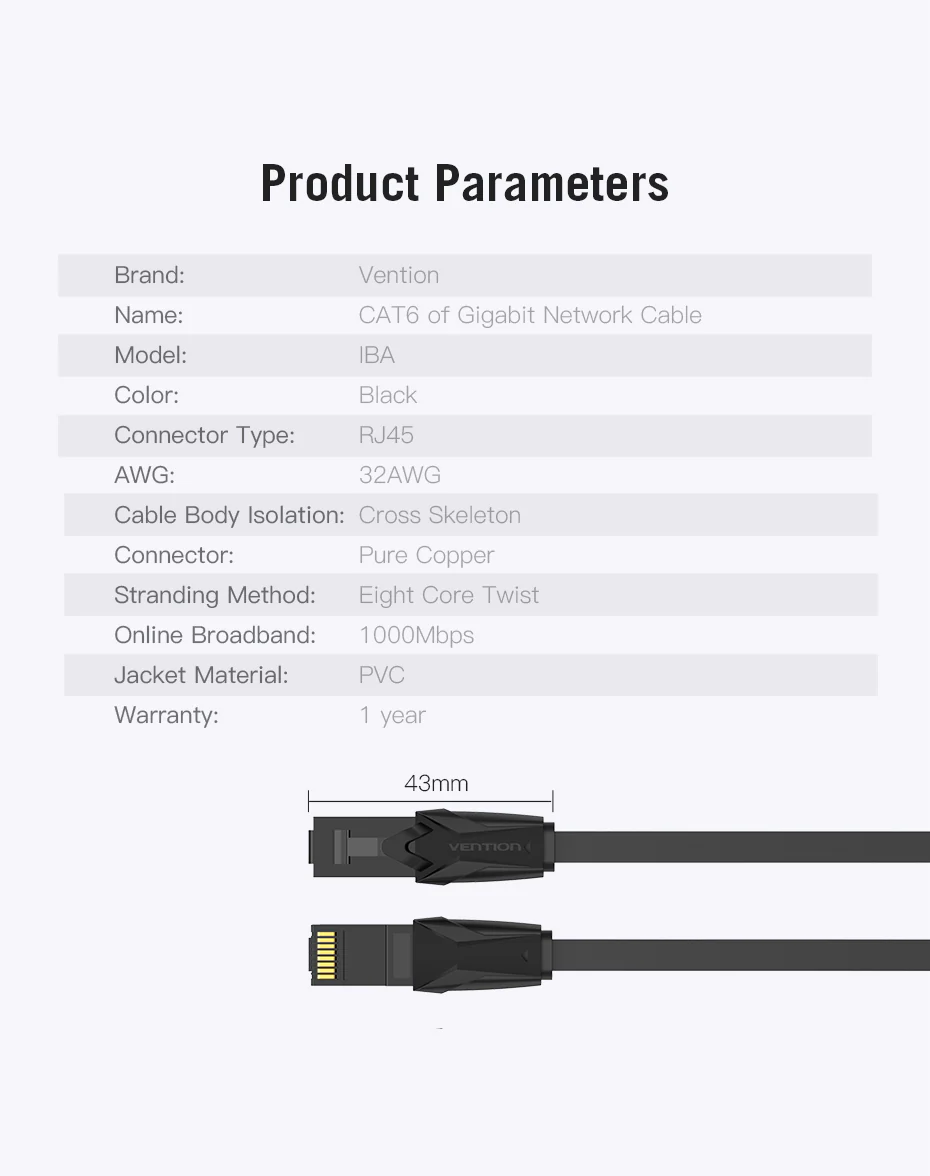 VENTION 威迅 Cat.6 Giga高速網路線 RJ45 (扁線) 1-5M 支援1G 乙太網路