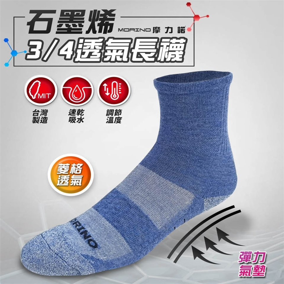 【MORINO】石墨烯菱格透氣氣墊襪 男長襪/麻藍L