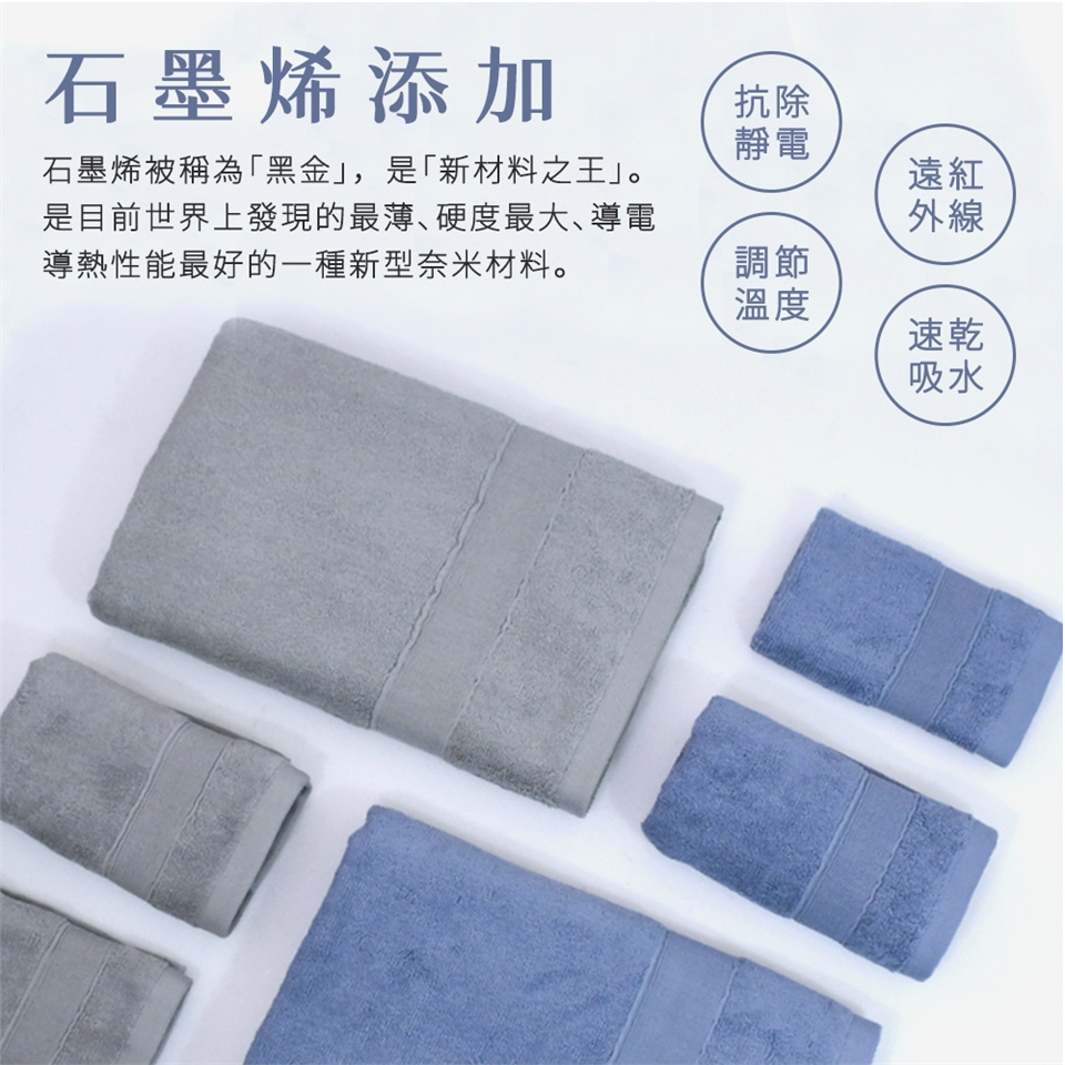 【MORINO】石墨烯素色緞條毛巾-藍色