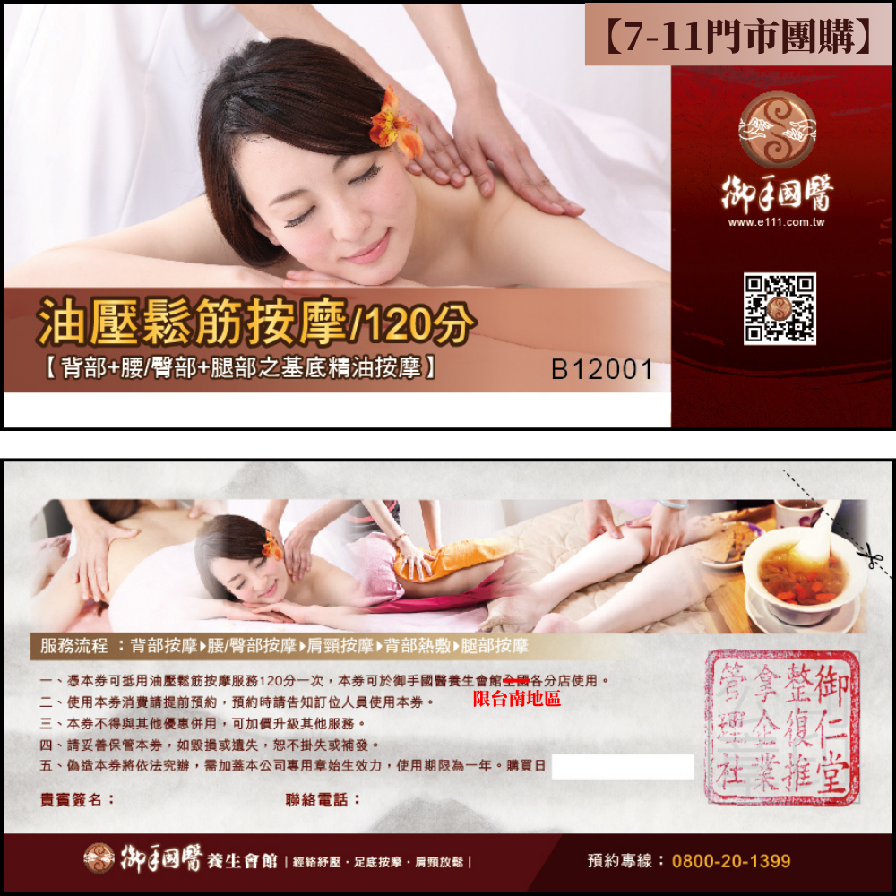 背部按摩、腰部按摩、手臂按摩、臀部按摩、肩頸按摩、背部熱敷、腿部按摩 (含側腿)、頭部舒緩