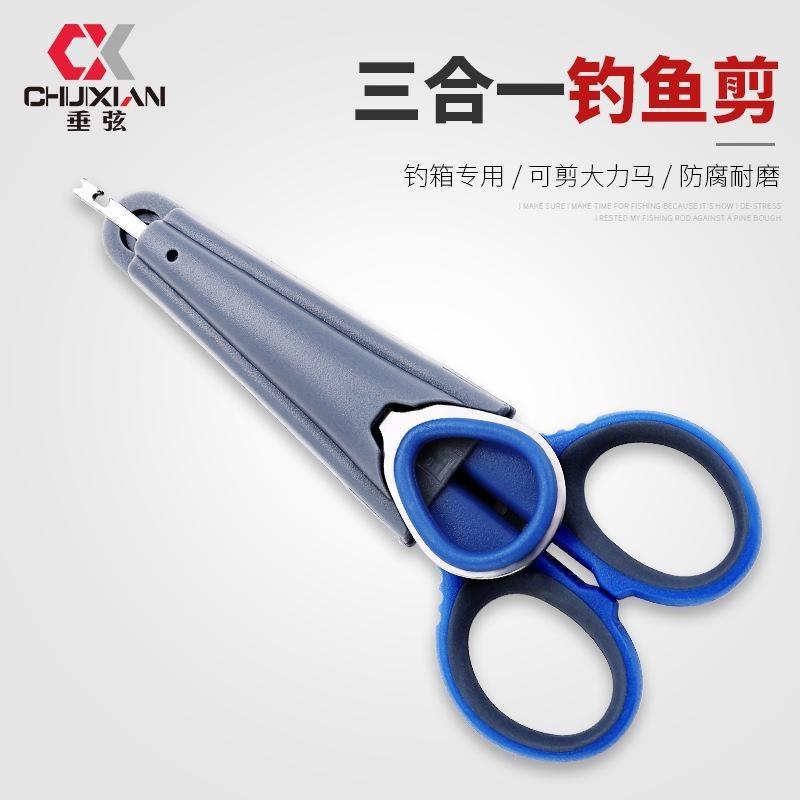 釣箱配件 - 三合一釣魚剪刀/脫鉤器/固定座(紅/藍/黑) 顏色 : 紅/藍/黑 材質:不鏽鋼+塑料 重量:42克