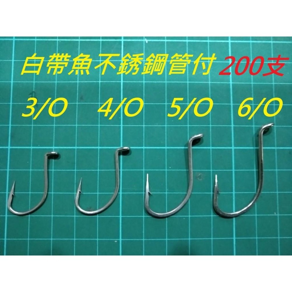 不鏽鋼白帶魚斜嘴直角管付鉤 200支 (多種號數 3/O 4/O 5/O 6/O)