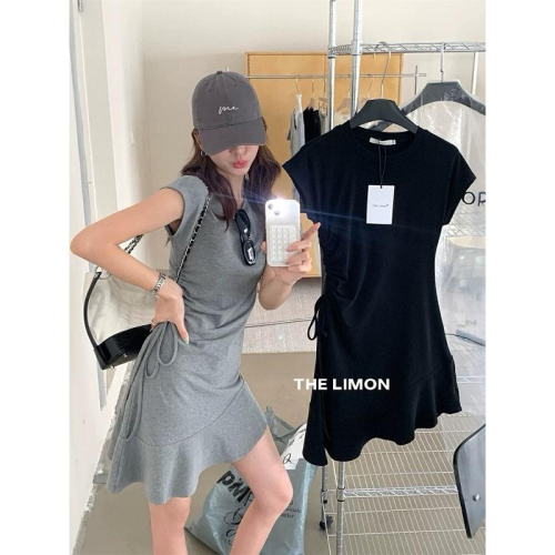 𝐑𝐈𝐂𝐇|實拍*現貨♡THE LIMON檸檬綠茶韓系側抽繩修身連身裙