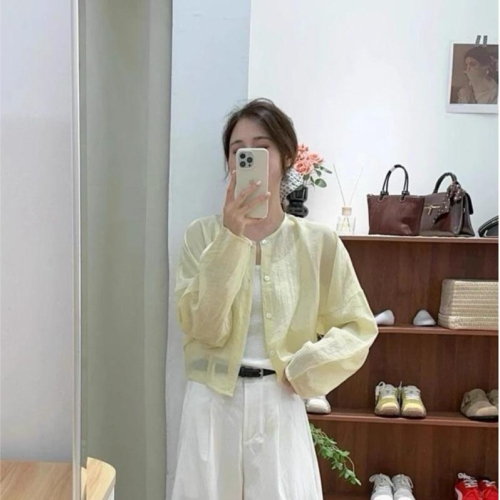 𝐑𝐈𝐂𝐇|現貨*文藝風輕薄透膚防曬罩衫