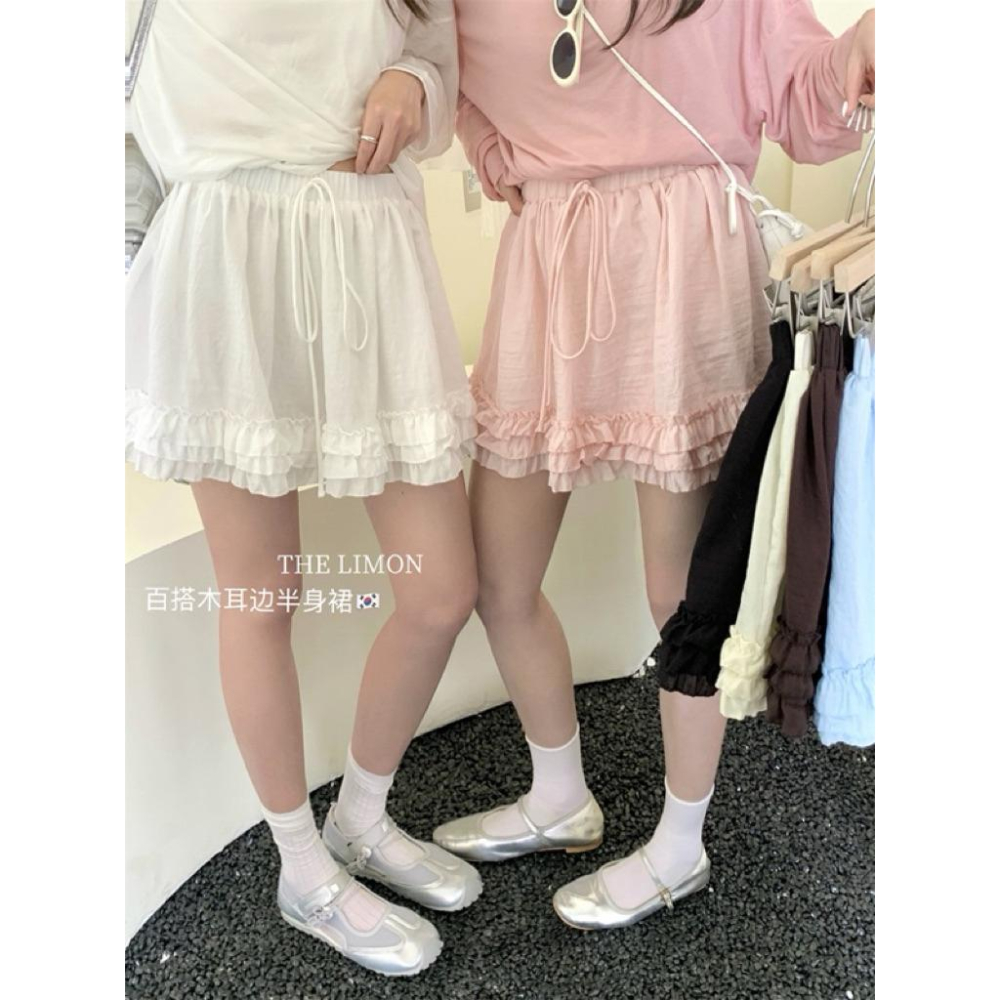 𝐑𝐈𝐂𝐇|現貨+預購𝗧𝗛𝗘 𝗟𝗜𝗠𝗢𝗡🍋百搭王♡木耳邊綁帶甜美減齡顯瘦短裙