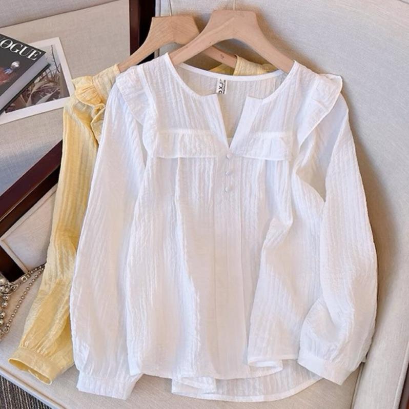 𝐑𝐈𝐂𝐇|現貨🔥寬鬆木耳邊夏天輕薄v領上衣