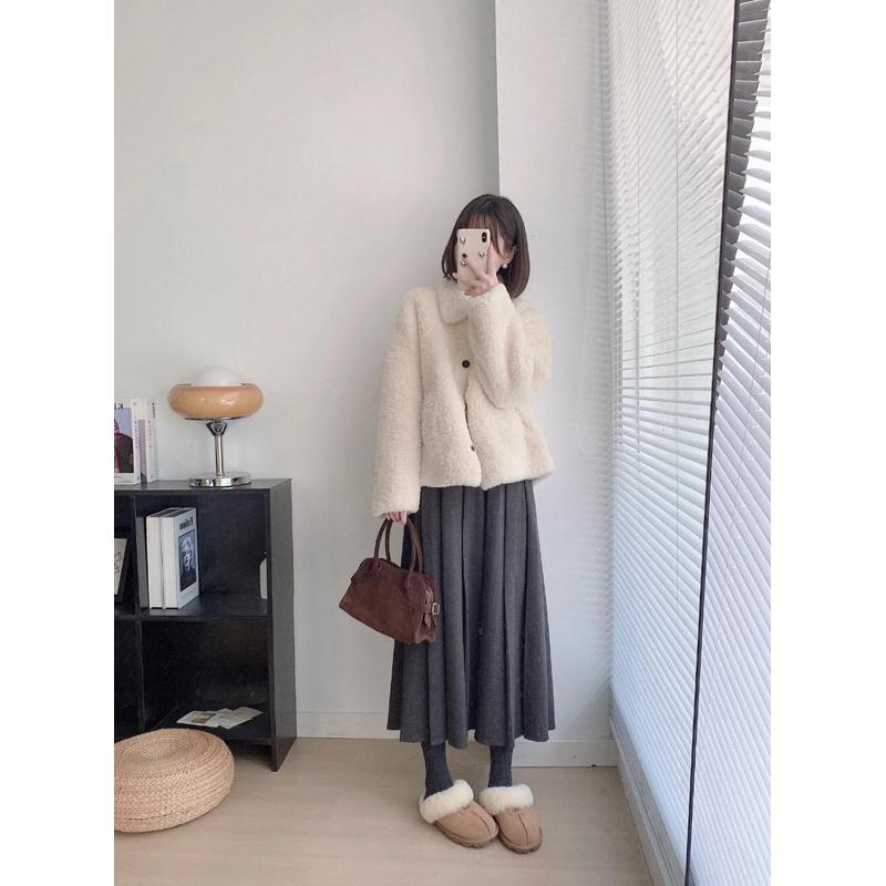 𝐑𝐈𝐂𝐇|超舒服的小白熊毛感~♡白色翻領毛絨外套 𖤐 現貨