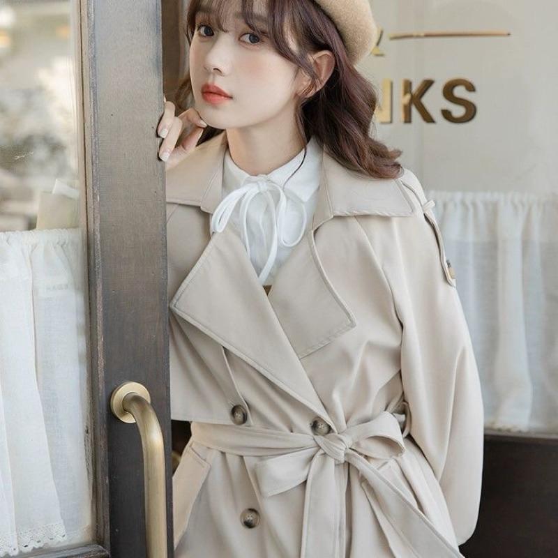 𝐑𝐈𝐂𝐇|現貨🫰🏻質感超好*英倫風綁帶卡其色長款風衣氣質雙排扣翻領泡泡袖大衣外套