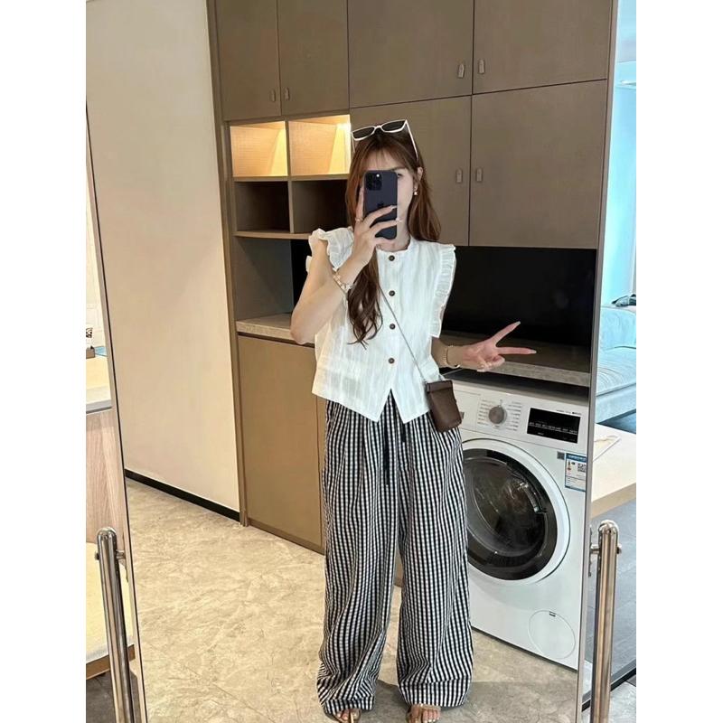 𝐑𝐈𝐂𝐇|現貨♡設計感飛飛袖拼接荷葉邊無袖純棉襯衫