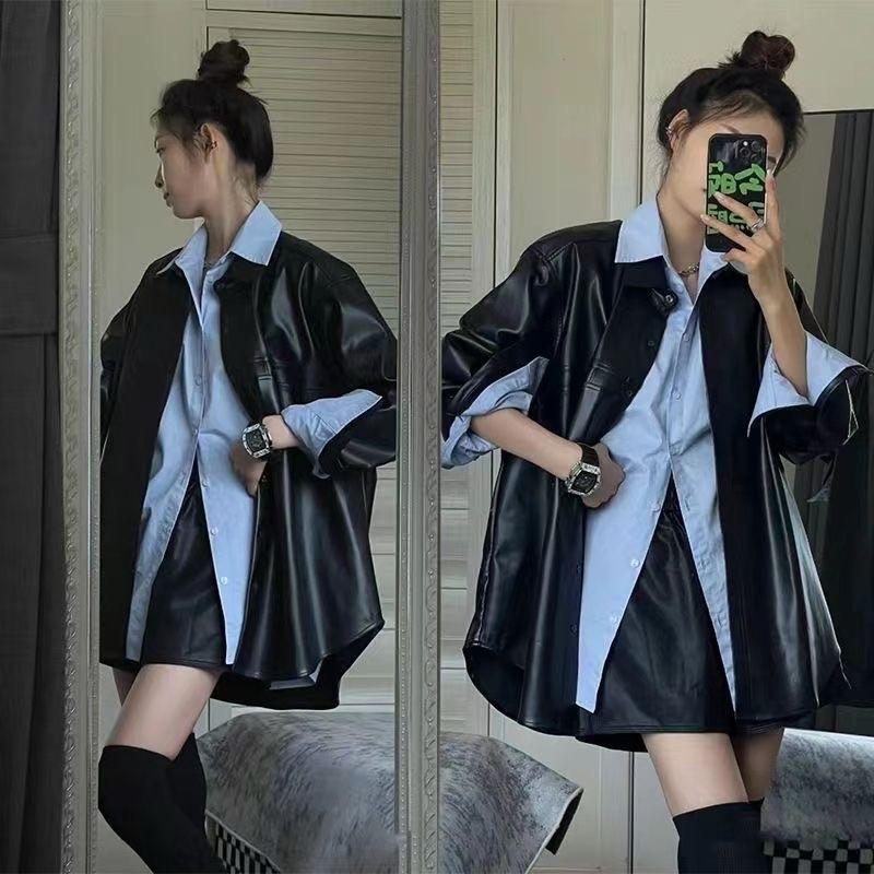 𝐑𝐈𝐂𝐇|秋冬帥氣簡約皮外套+下擺開叉襯衫♡現貨+預購