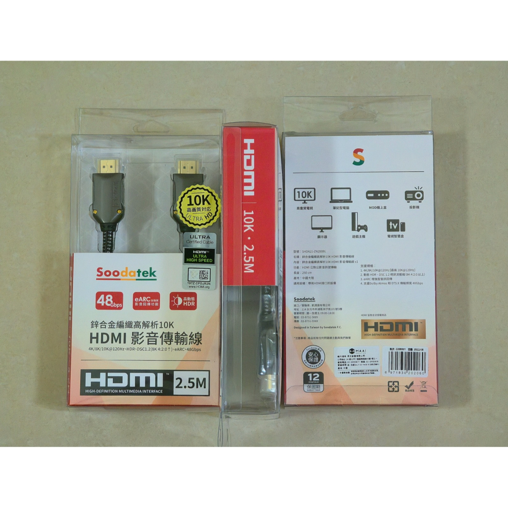 - HDMI 2.1 Ultra High Speed 認證,傳輸頻寬 48Gbps