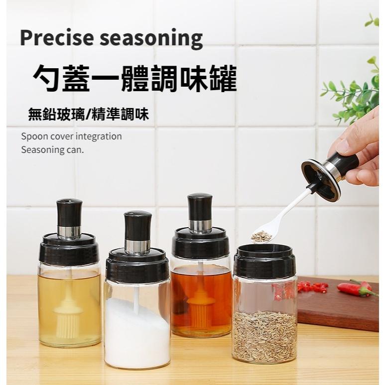 加厚玻璃 勺蓋一體 調味盒 廚房調味罐 刷醬 湯匙蓋 一體 密封鹽罐 密封罐 調味罐 防潮密封罐 防漏調味瓶 露營