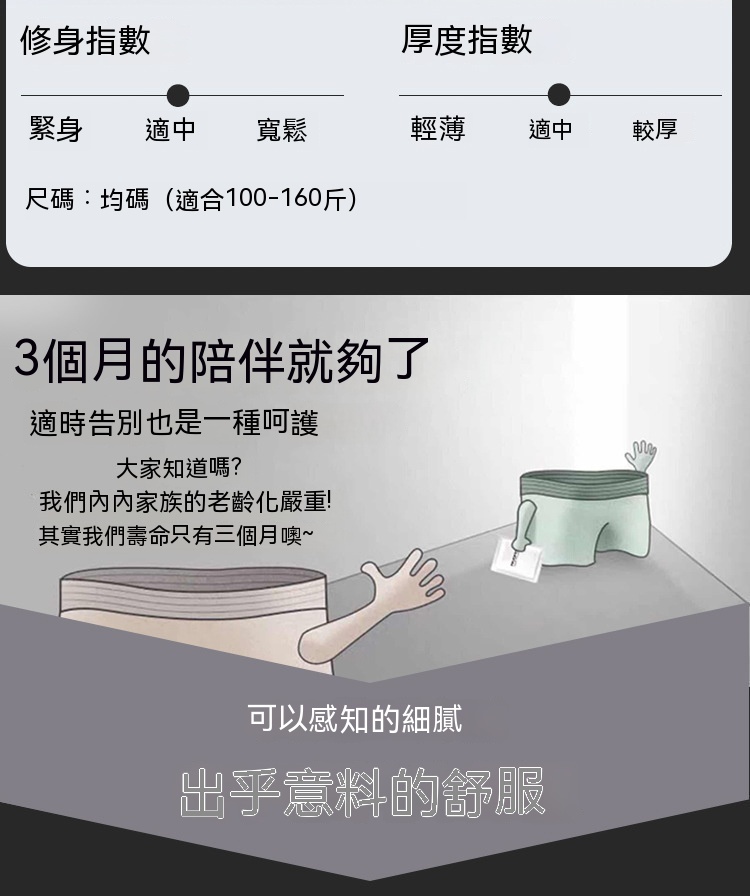根據男性身型設計,活動自如,久穿也不勒痕。
