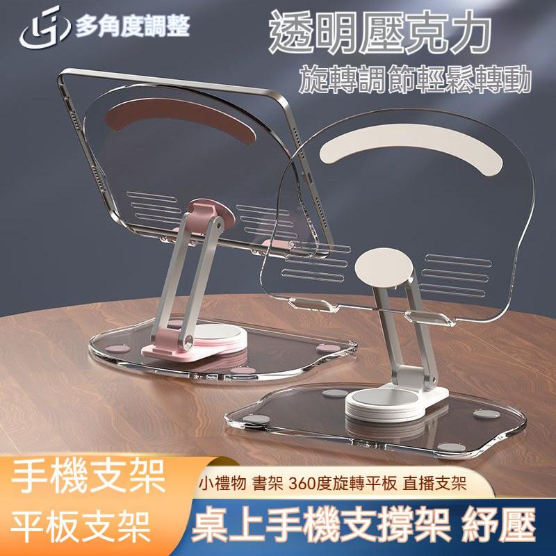 手機支架 懶人支架 桌上手機支撐架 平板支架 小禮物 書架 全新爆款壓克力 360度旋轉平板電腦桌面多功能直播支架