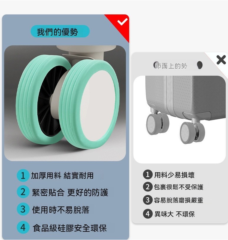 🛡 耐磨保護:高質感材質,有效保護行李箱輪子,避免刮傷或磨損。