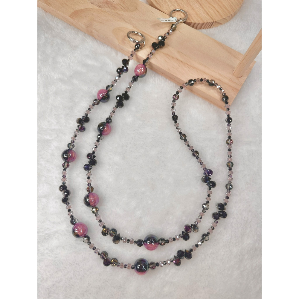 A2黑配淡淡紫粉雙色海蒂珠長鍊 海蒂珠 花球 繡球花 夜光 溫變 雙鍊 單鍊 手機鍊 手機掛繩 包掛