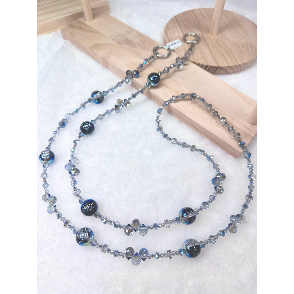 A2藍雙色小碎片海蒂珠配灰長鍊 海蒂珠 花球 繡球花 夜光 溫變 雙鍊 單鍊 手機鍊 手機掛繩 包掛