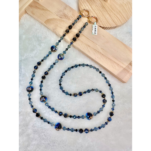 A2土耳其藍內鑲鑽滿天星海蒂珠長鍊 海蒂珠 花球 繡球花 夜光 溫變 雙鍊 單鍊 手機鍊 手機掛繩 包掛