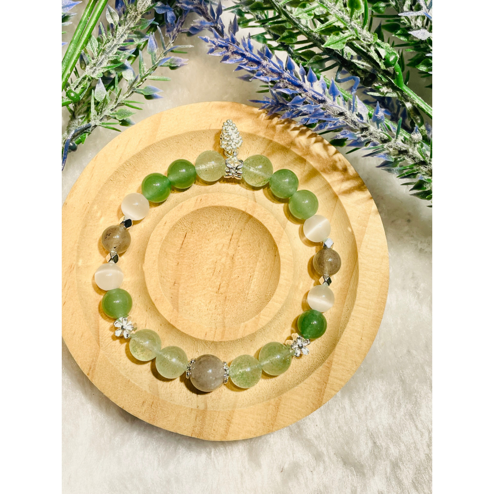 #挑戰100款水晶手鍊 之20|綠野仙蹤。每個人都夢想有著屬於自己的《綠野仙蹤》,今天設計了這款手串後,立馬腦海中浮現綠野仙蹤這4個字,於是⋯決定就取名為綠野仙蹤。綠色系的搭配,彷彿穿越了無比生氣的療癒森林🌳,整個人瞬時充滿生命力,像是給自己充上🈵🈵的電,清新優雅療癒的顏色,也很適合春天的氣息🌸,願你也能煥然一新找到自信與勇氣,勇敢向前出發🛫 #開運飾品 #手作治癒 #設計款手鍊 #水晶手串 #水晶手鍊 #能量水晶 #仙女手鍊 #綠野仙蹤 #東陵玉 #綠草莓晶 #白色貓眼石 #灰月光