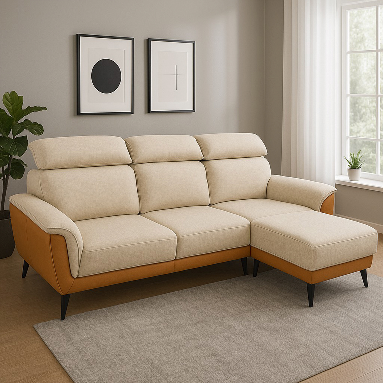 防潑水涼感布沙發、耐磨超纖皮、高密度泡綿、S型彈簧、高彈力皮帶、實木骨架