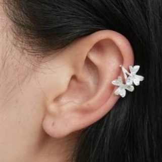 日本花朵造型純銀耳夾 全新 S925銀鍍白金 盒裝