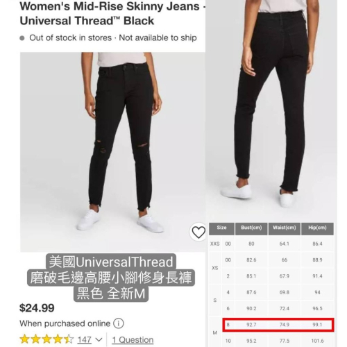 美國UniversalThread磨破毛邊高腰小腳修身長褲