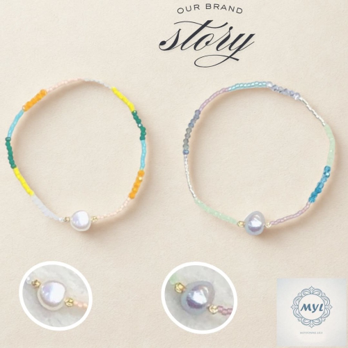 彷彿晨霧初散,曙光悄然流轉。這款晶鑽系彩珠手鍊以 韓國產設計 手工完成,中央選用一顆自然不規則形狀的 偏紫色淡水珍珠,珠面反射夢幻柔光,與清新粉、藍、薄荷綠珠色交織,散發出柔和神秘的浪漫氛圍。