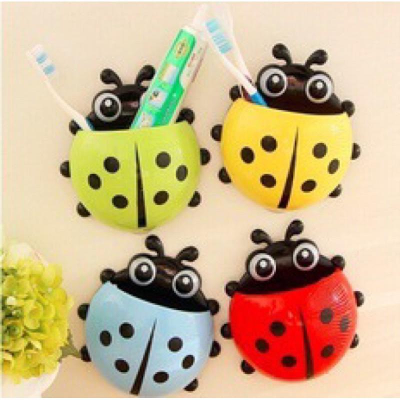 掛壁可愛瓢蟲牙刷架塑料免打孔吸盤牙刷收納架牙膏整理架