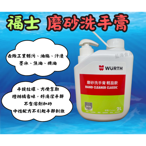 #福士 Wurth #磨砂洗手膏 #洗手膏 #工業洗手膏 #天然洗手膏 #輕盈款 2L #去污 #黑油清潔 #公司貨