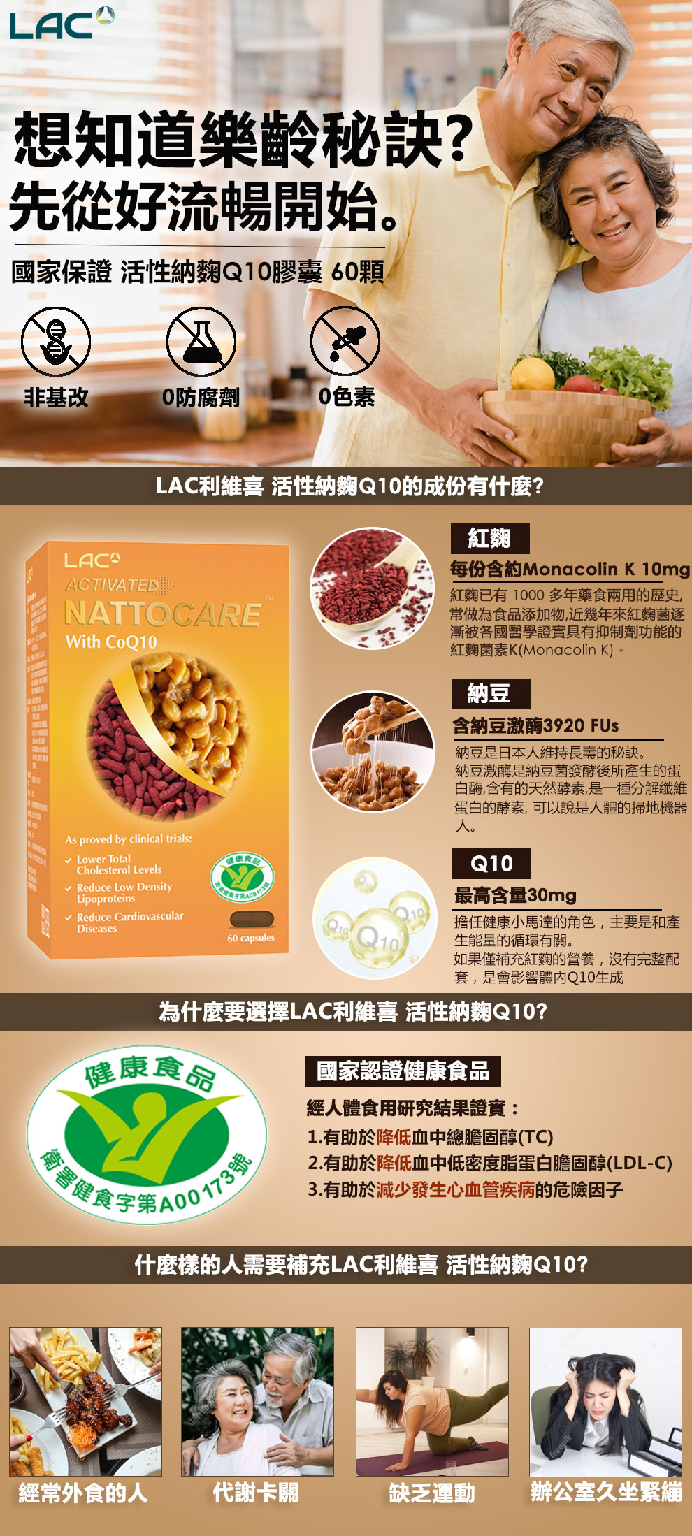 【LAC 利維喜】 活性納豆紅麴Q10膠囊60顆