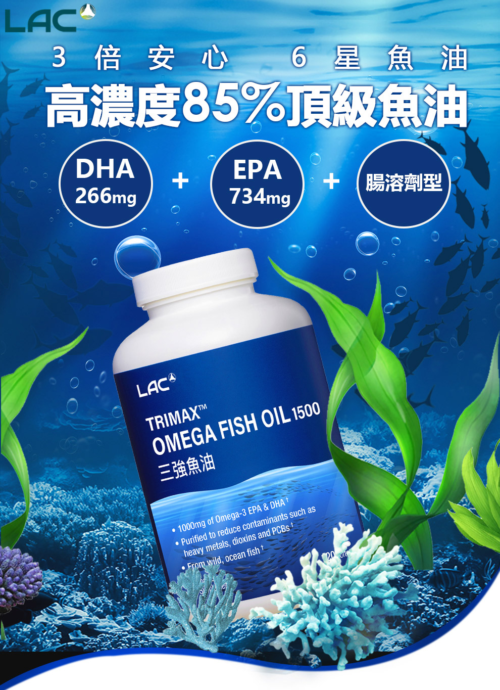【LAC 利維喜】三強頂級魚油膠囊60顆